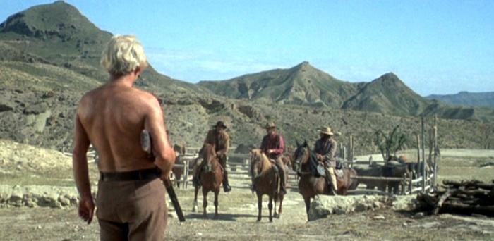 Bill San Antonio (Frank Wolff) hurried into the Cortijo