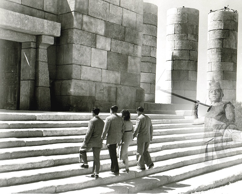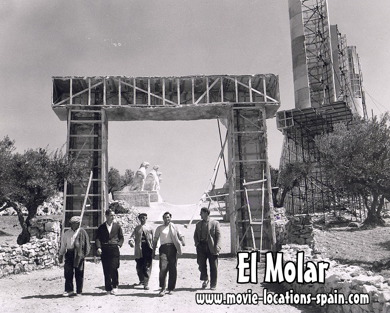 Front view of the "Palace" Set - Residents of El Molar, who are working as Extras in the movie, visit the Set (1955).