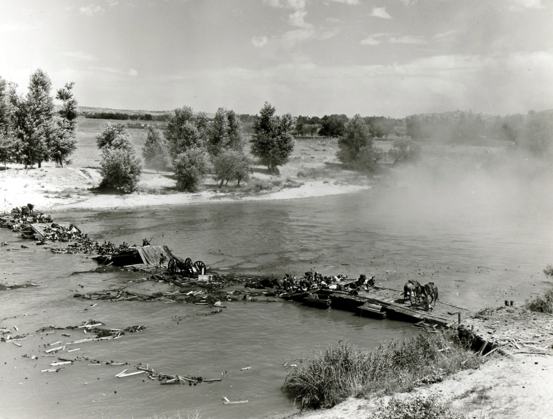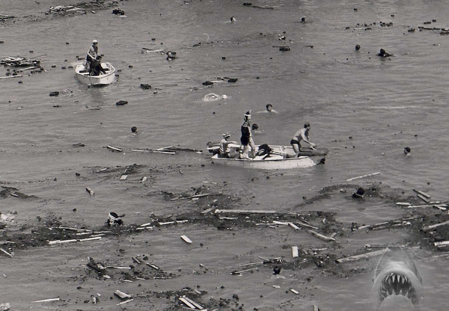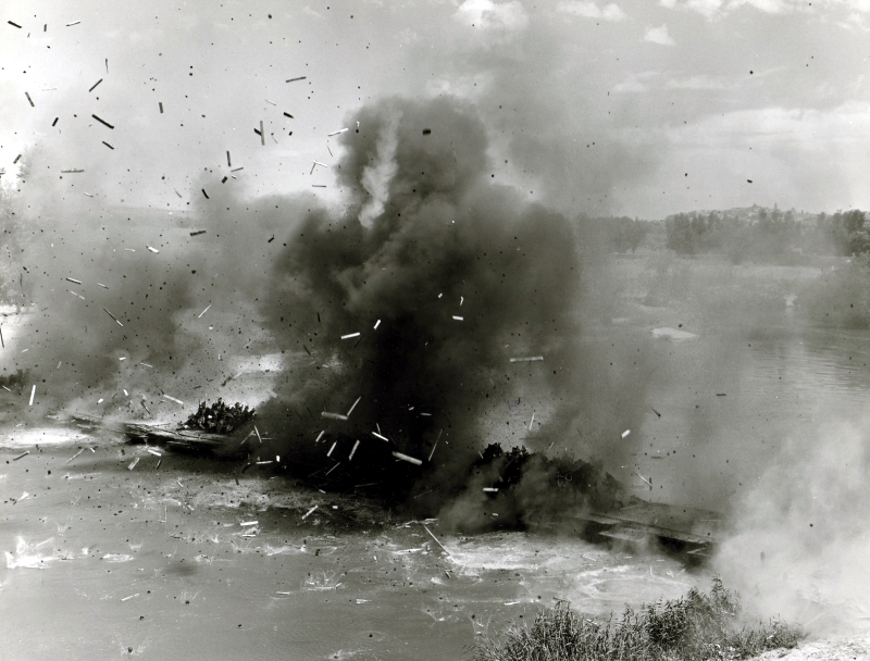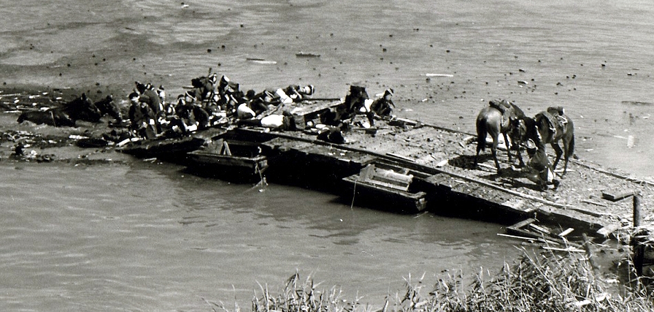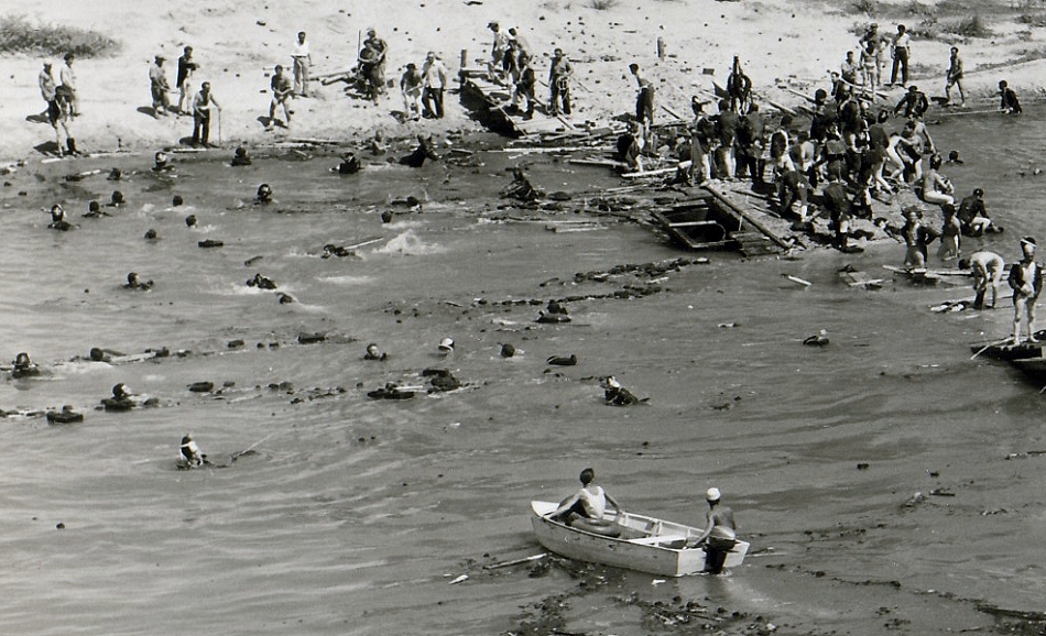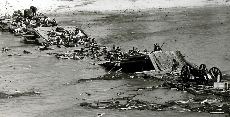 Jesus...look at the guys. Some drift in the water, while others are on the remains of the bridge.