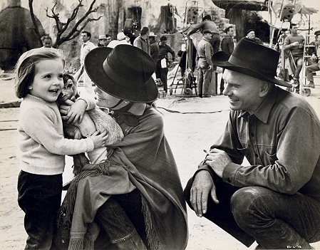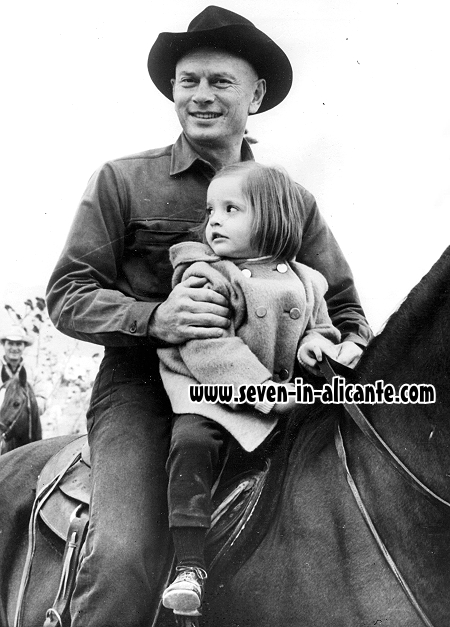 | Yul Brynner proudly rides with his cherished daughter Victoria at the Set in Agost (Alicante). |