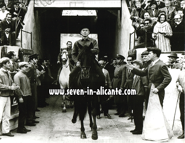 | A matter of honor. Alicante, Spain 1966: Actor Yul Brynner rides into the bullring in Alicante and the crowd cheers. Brynner was given the honor of being "Aguacil" at a bullfight held for a local charity. The "Aguacil" leads the parade of bullfighters into the ring and symbolically receives the keys to the Bulls' gate leading to the ring. |