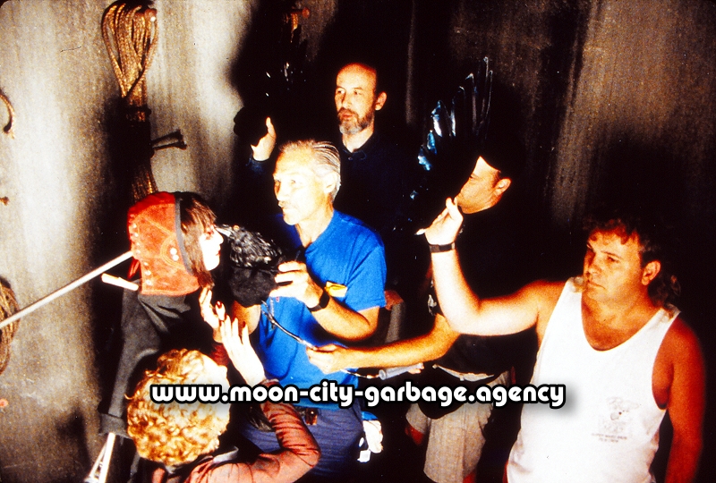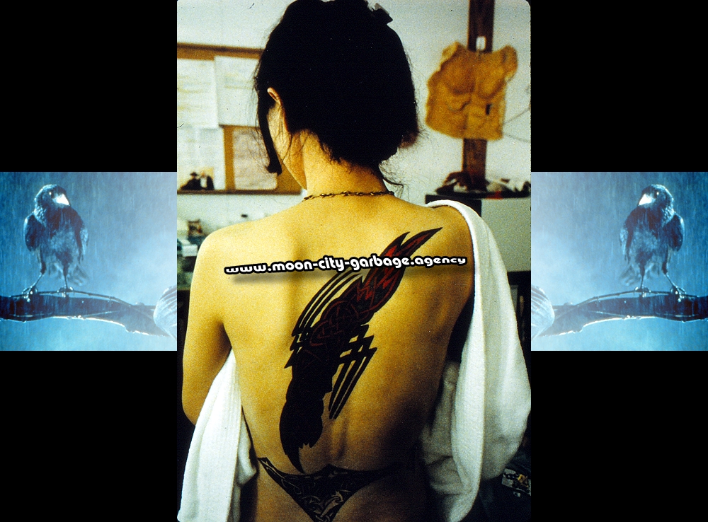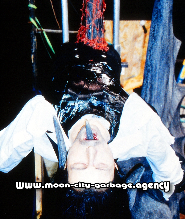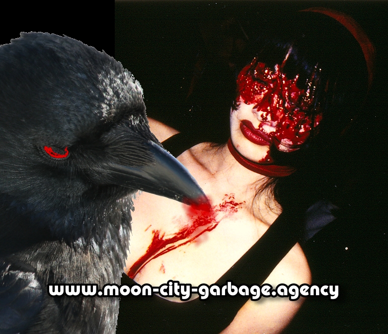 Beak FX by Lance Anderson. Lance 'The crow' pecks the eyes out of a latex head mask (Bai Ling).