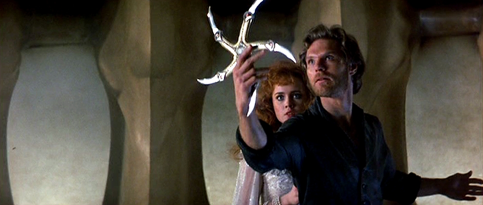 Colwyn used the Glaive to free Lyssa. Derek Meddings designed the 5-blade sword (The Glaive).