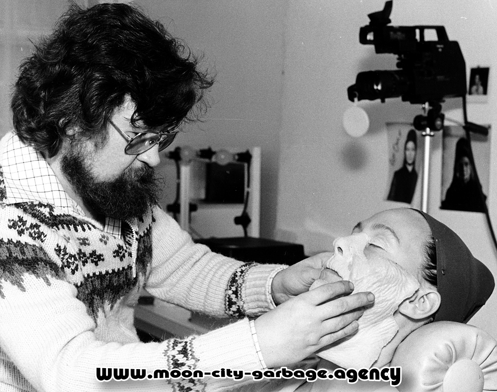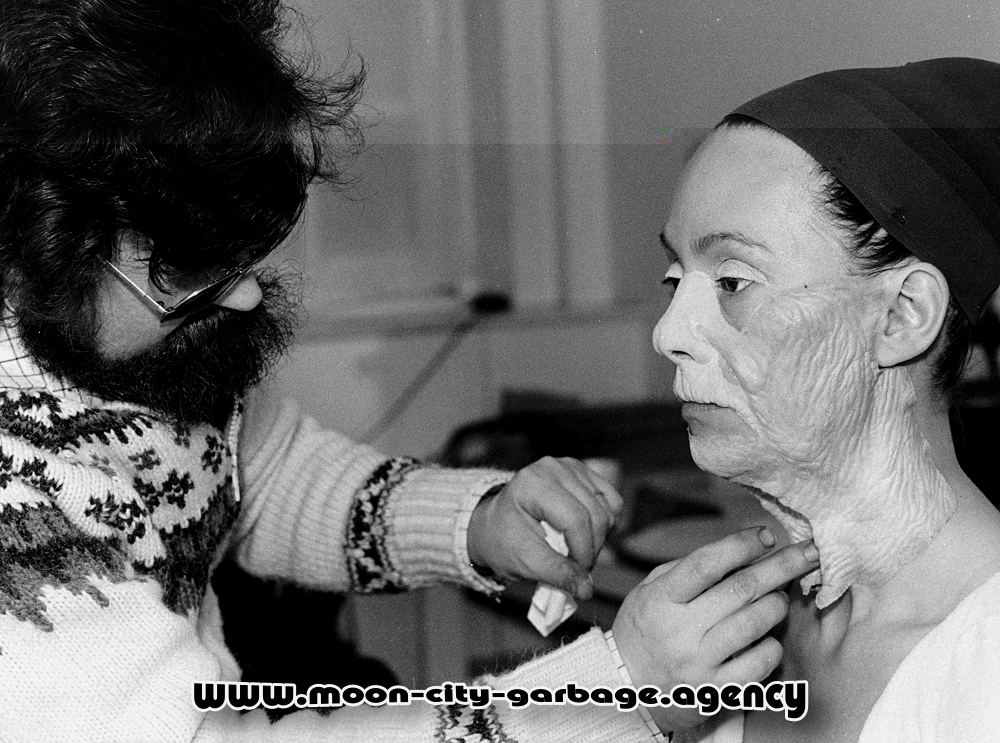 Francesca Annis in the makeup shop of Nick Maley. It took close to 6 hours, to finish the complex Makeup.