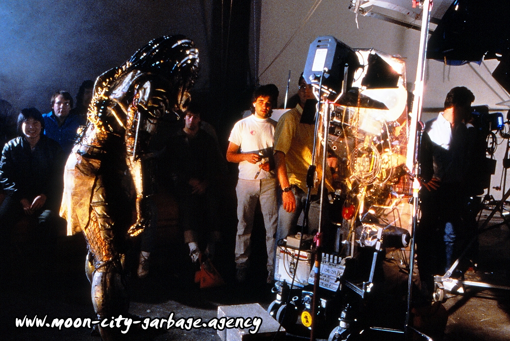 What a great photo! The Predator (Kevin Peter Hall) hugs the makers of 'Predator 2'.